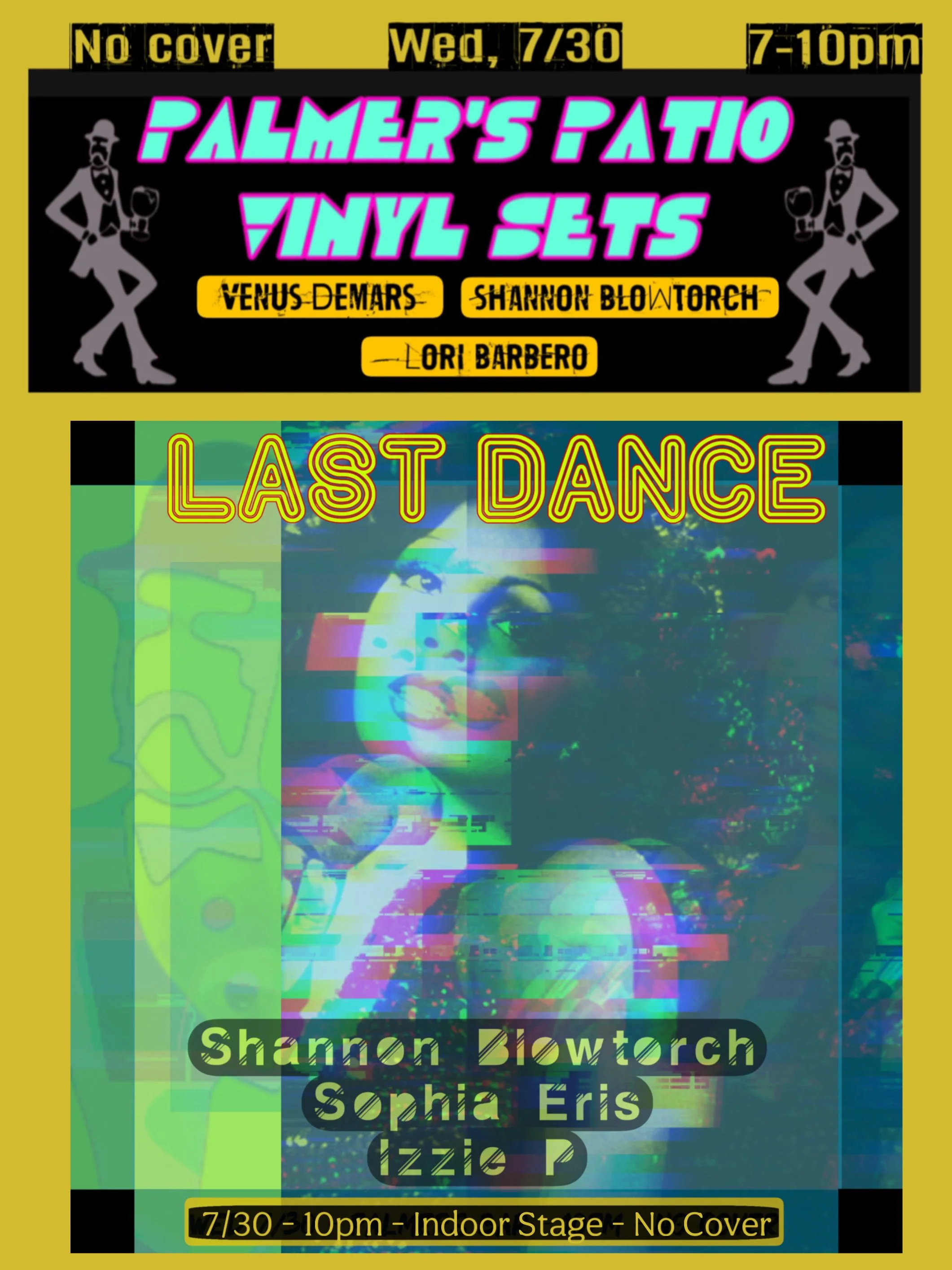 DJ SHANNON BLOWTORCH AND FRIENDS! MID-SUMMER BLOWOUT! With Venus DeMars, Lori Barbero (7-10pm patio) Sophia Eris and Izzie P and Shannon (inside after 10pm).